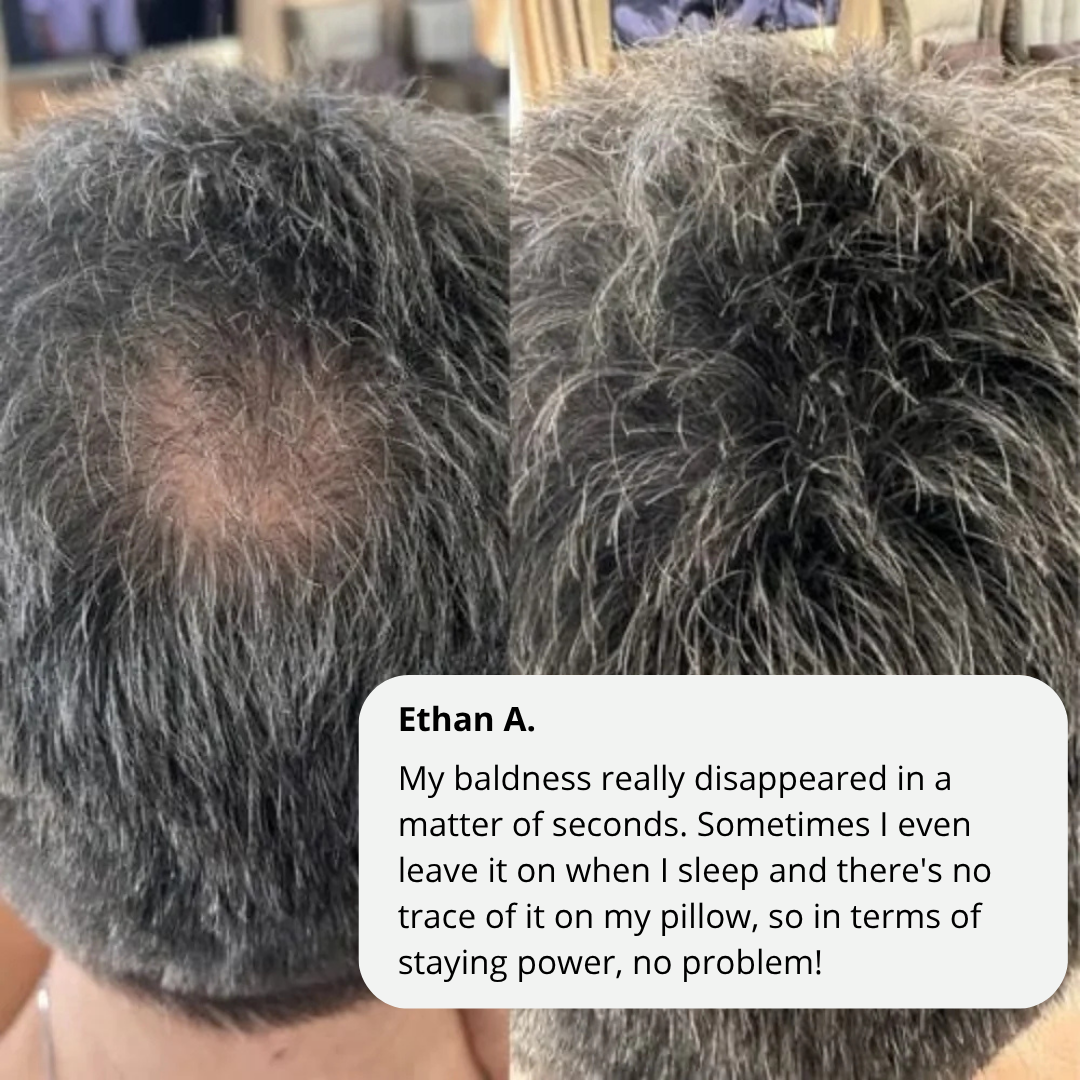 In less than 10 seconds, your baldness disappears. Immediate effect, no waiting.
